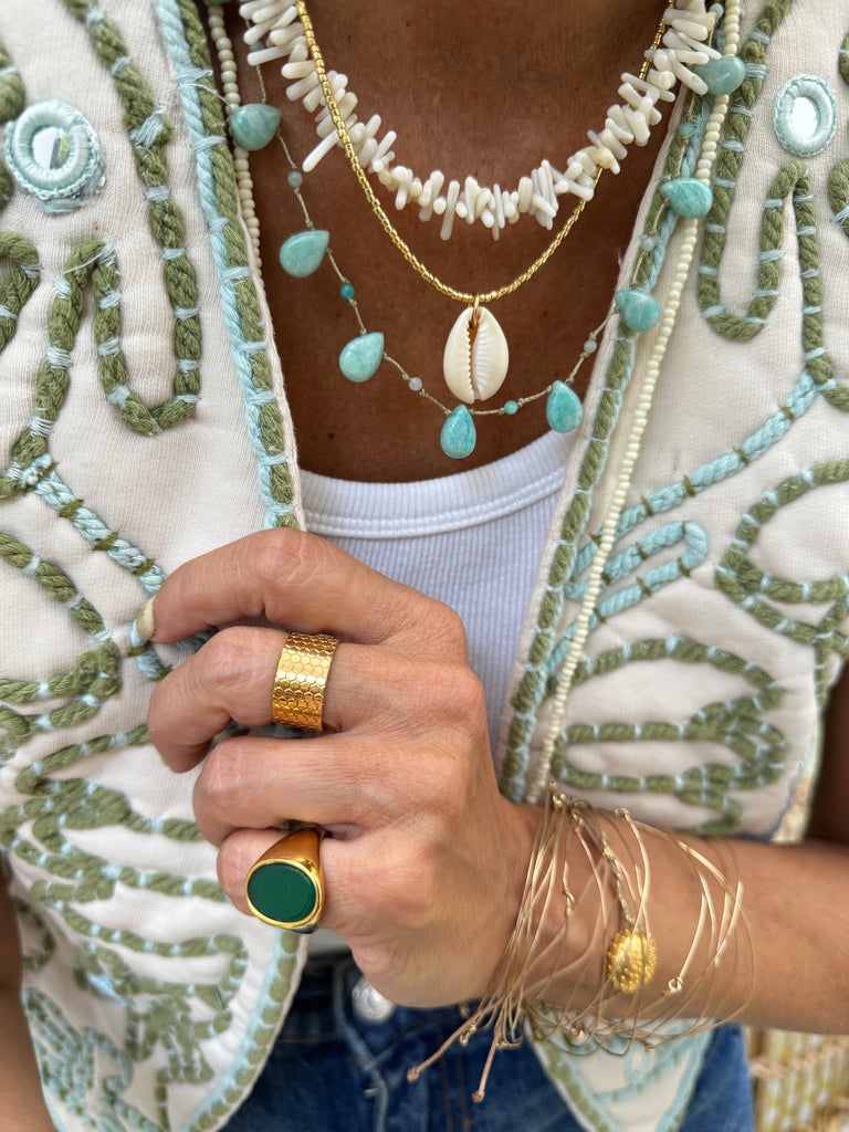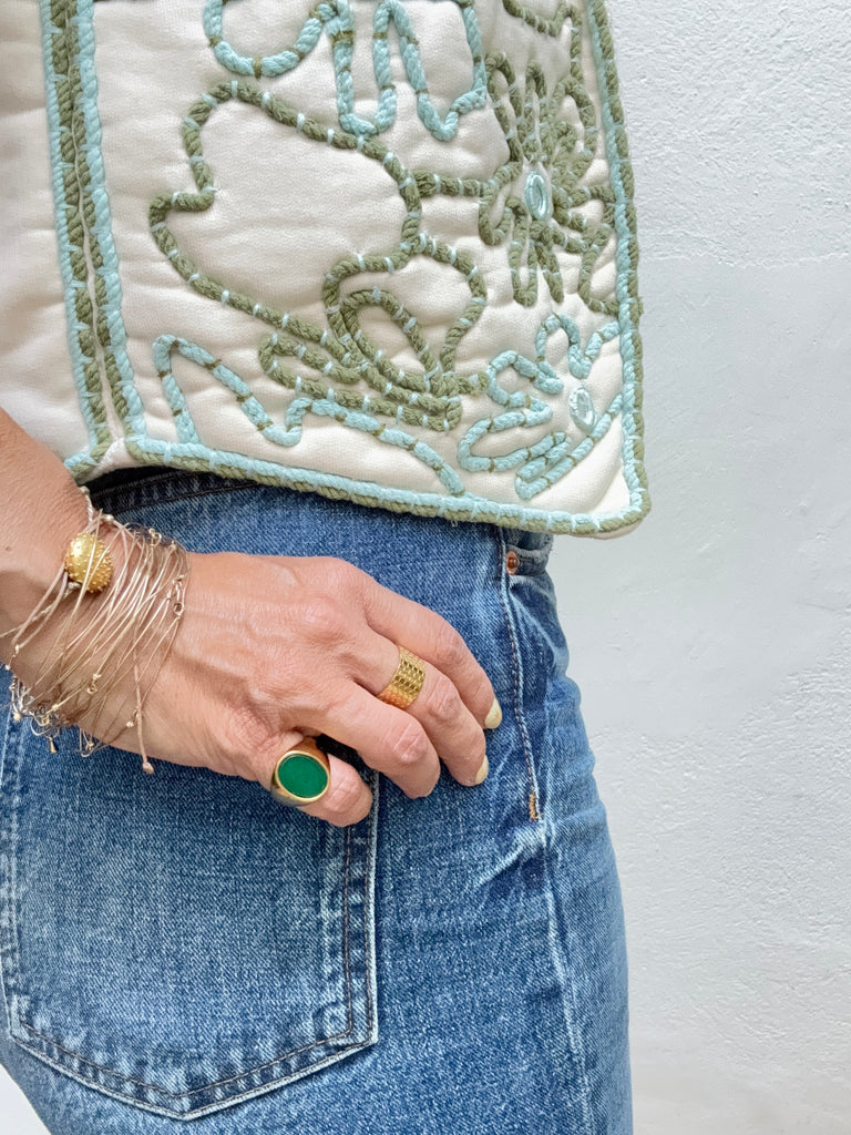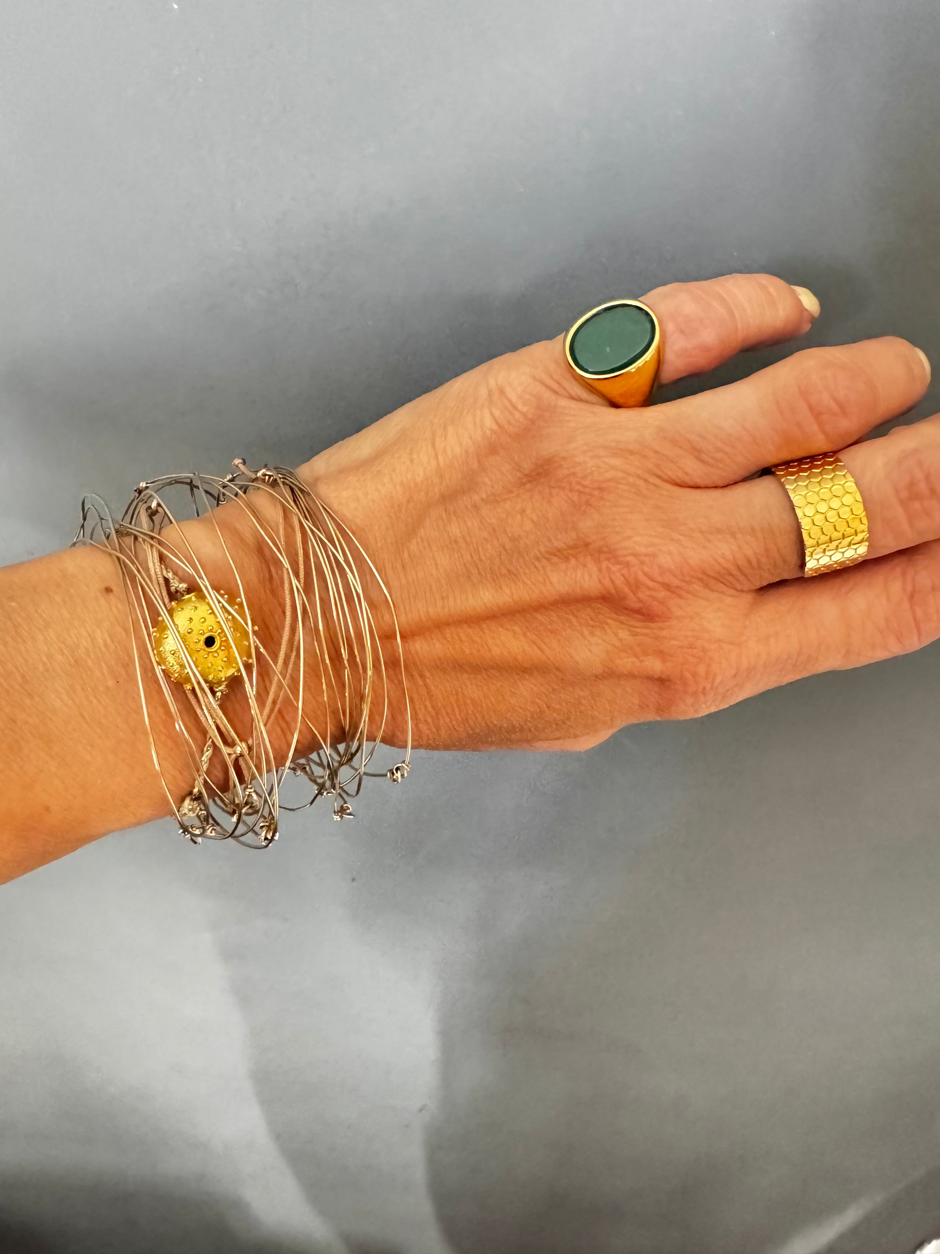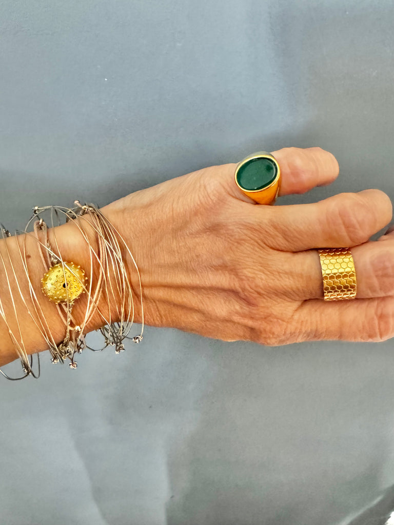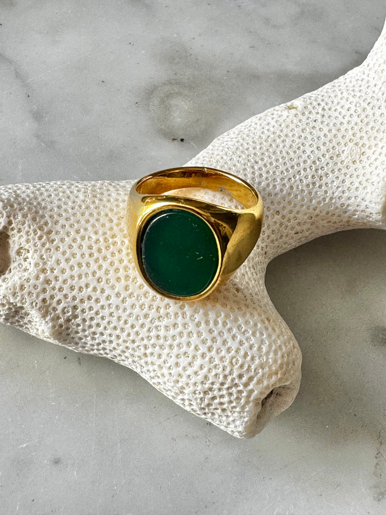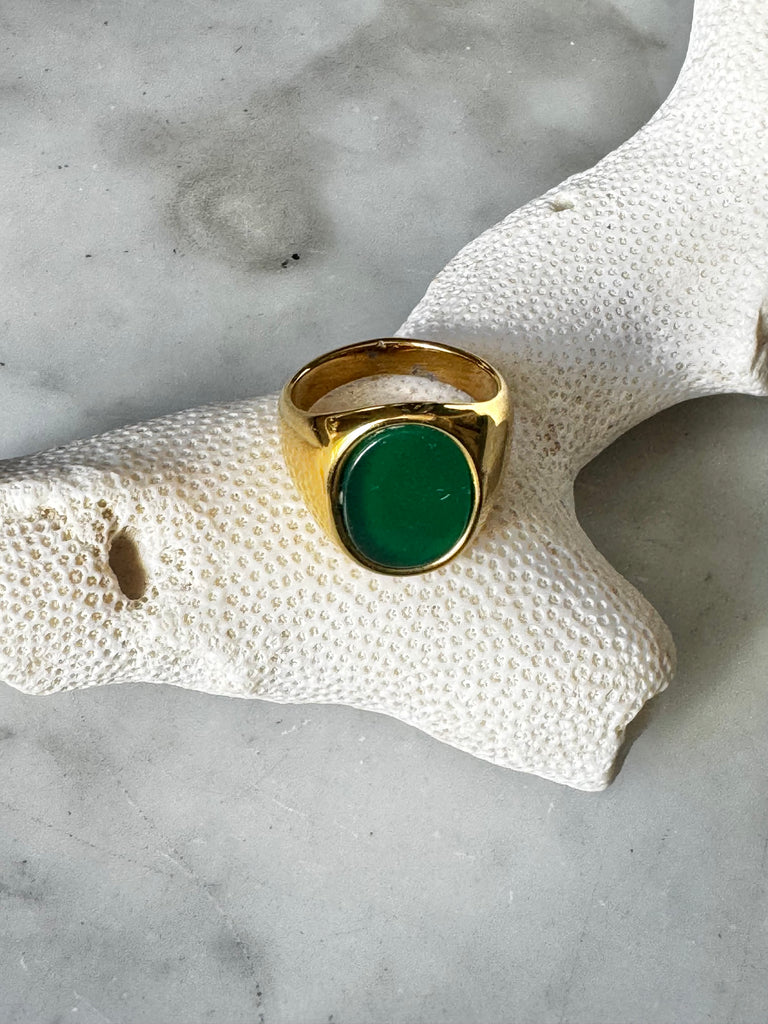 Chevalière en acier inoxydable avec cabochon ovale en Onyx Vert