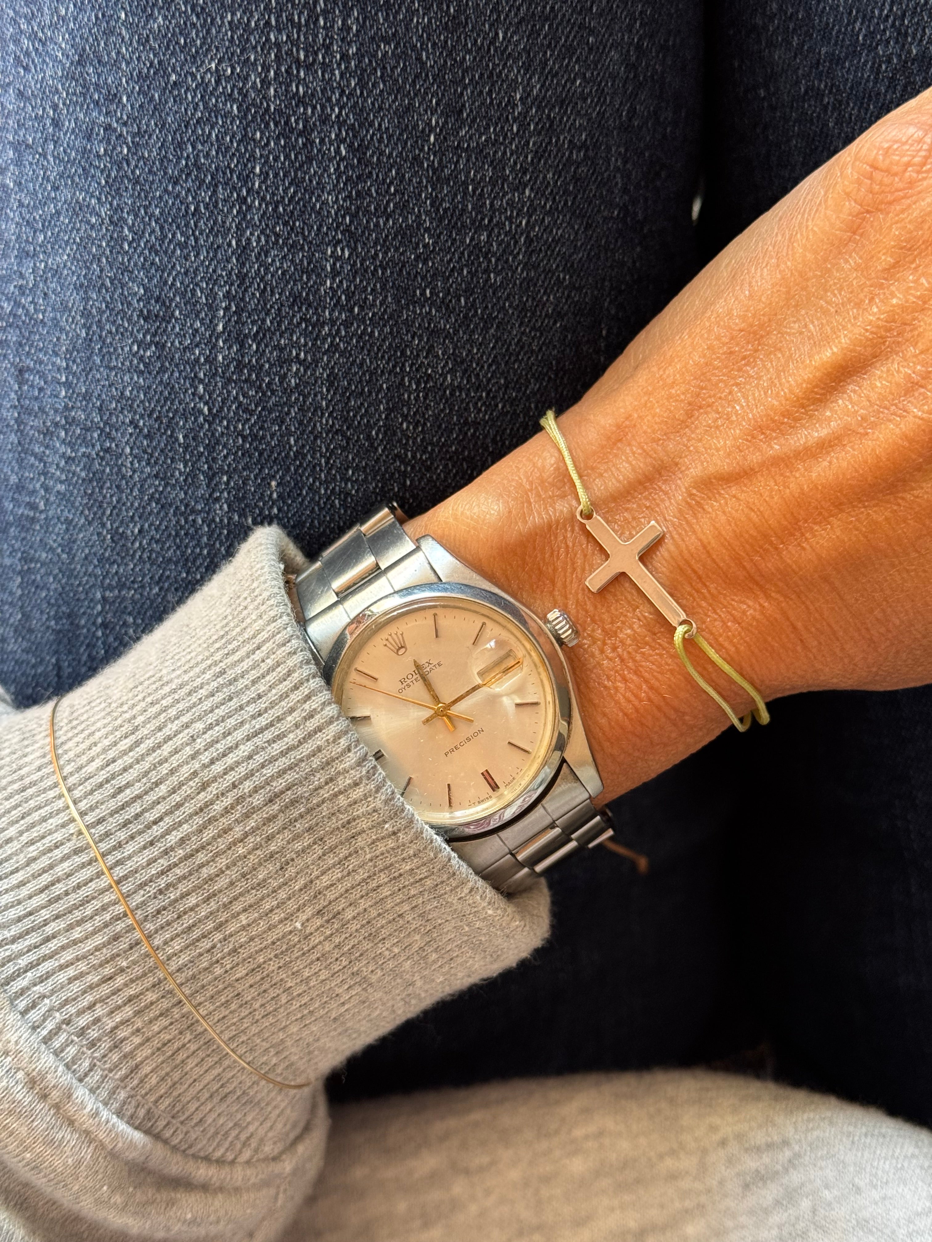 Se règle par 2 noeuds coulissants, s’adapte à tout poignet merci de m’indiquer si le bijou est destiné à une femme un enfant ou un homme.