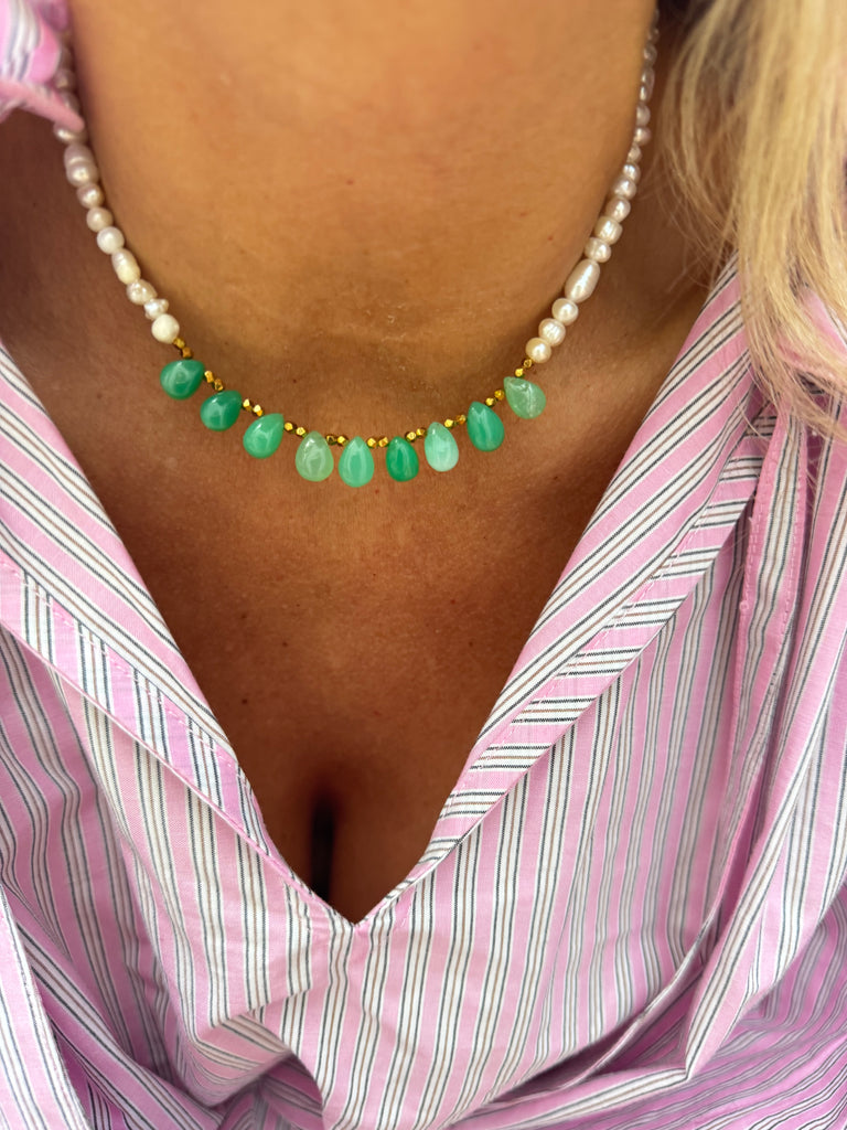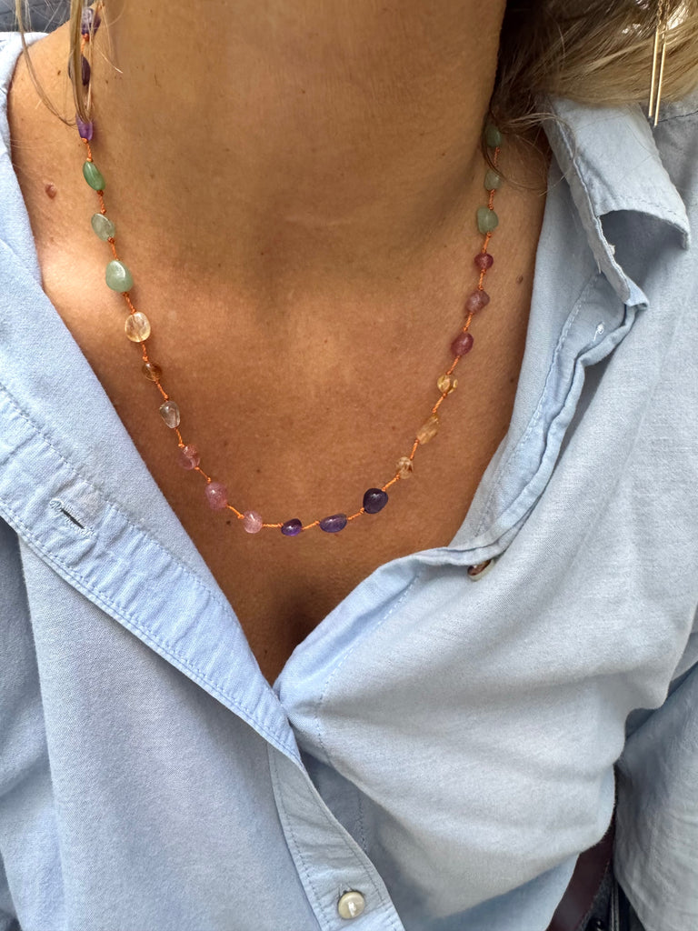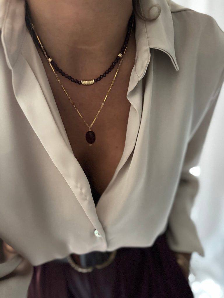 Collier GISELA Calcédoine pourpre et Œil de Tigre