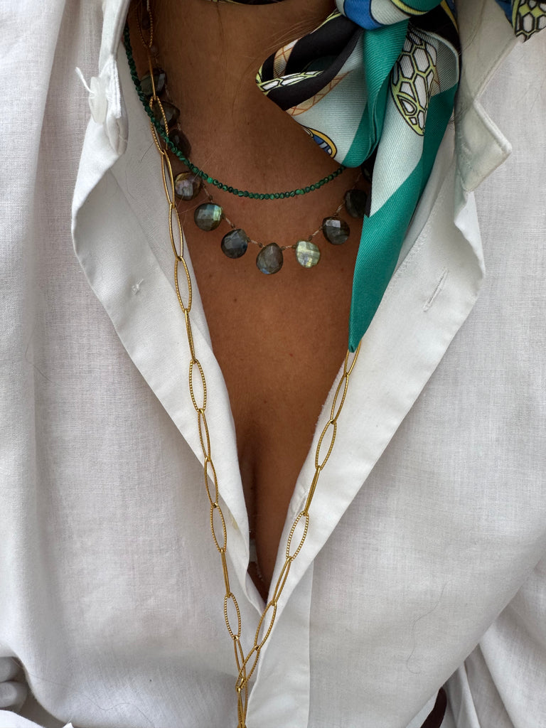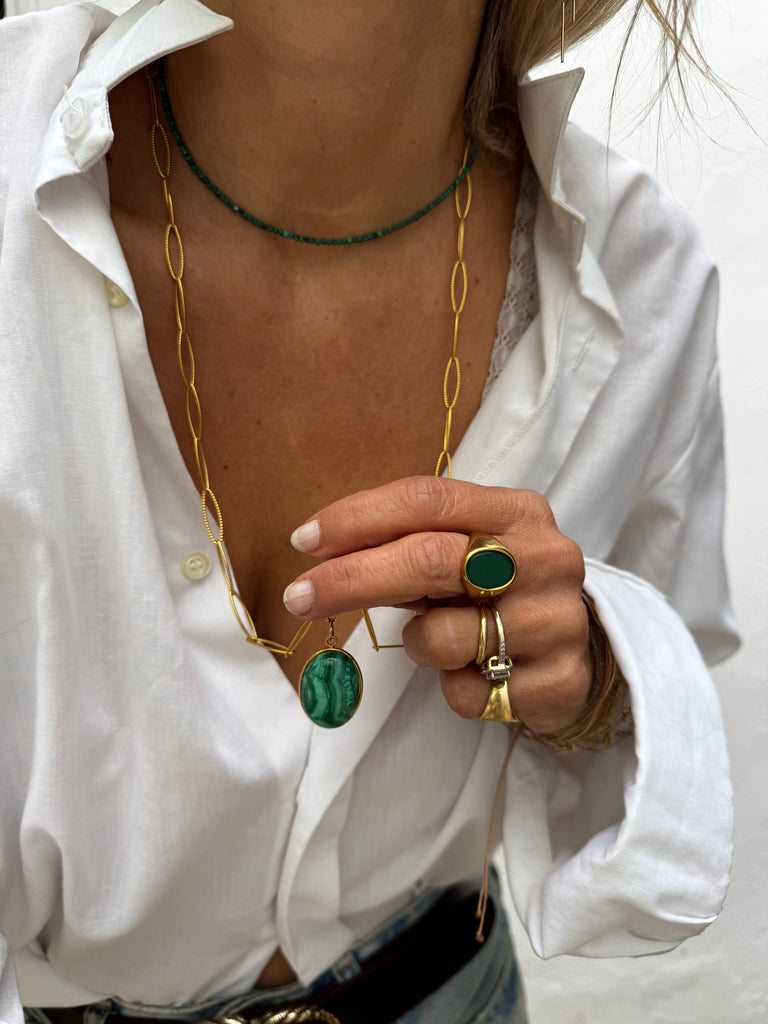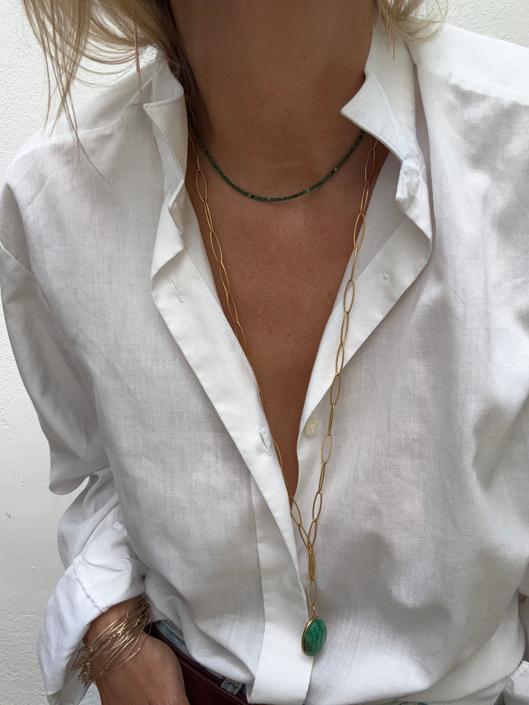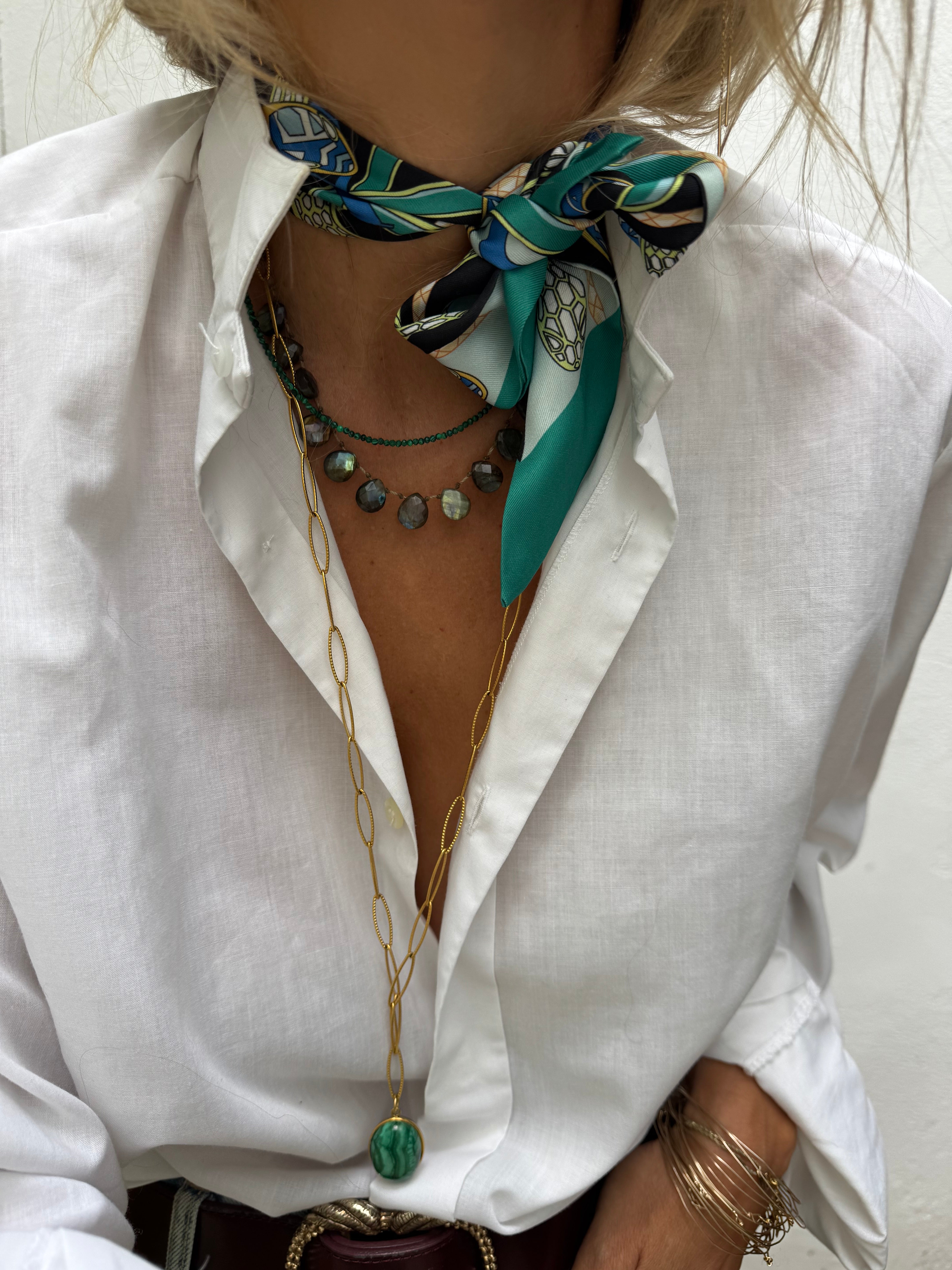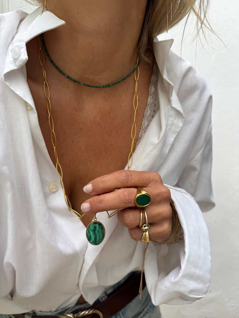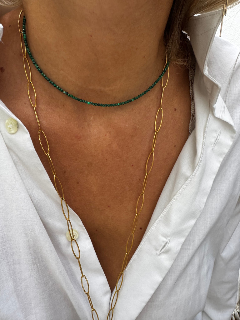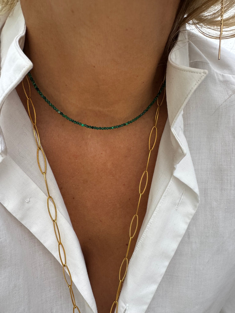 Collier en pierre malachite et fermoir en acier inoxydable collier très chic et très fin qui va avec tout.