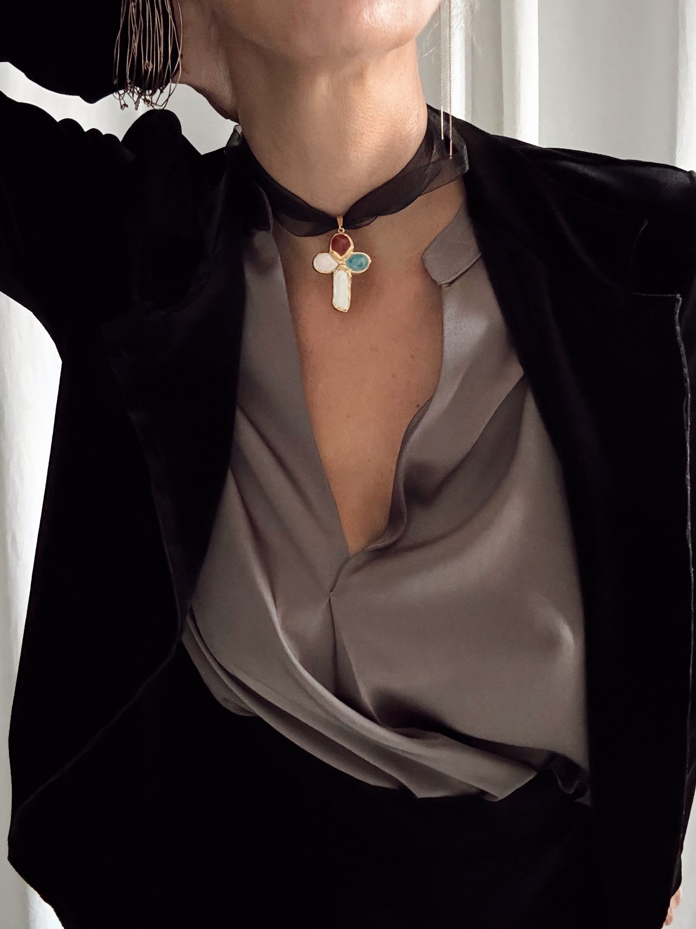 Collier pendentif croix baroque
