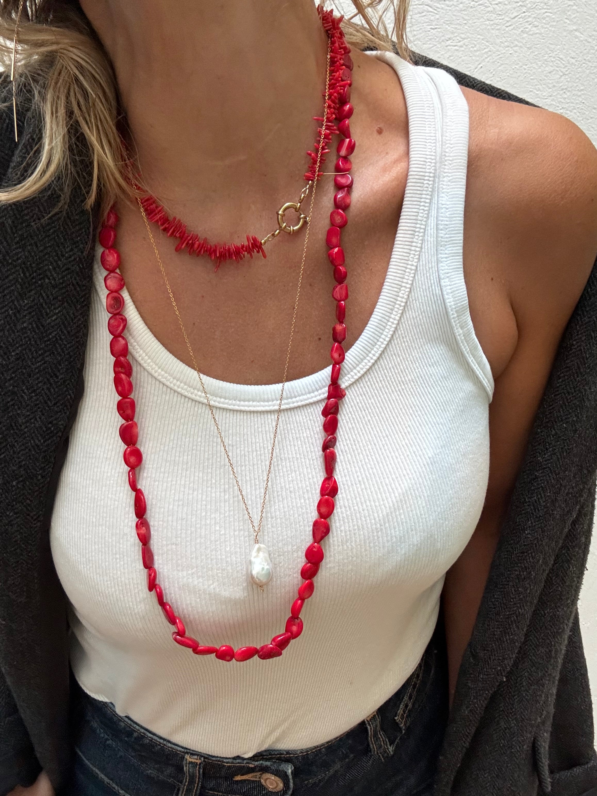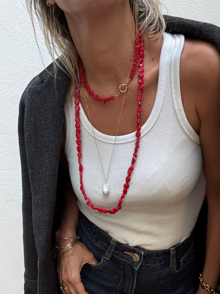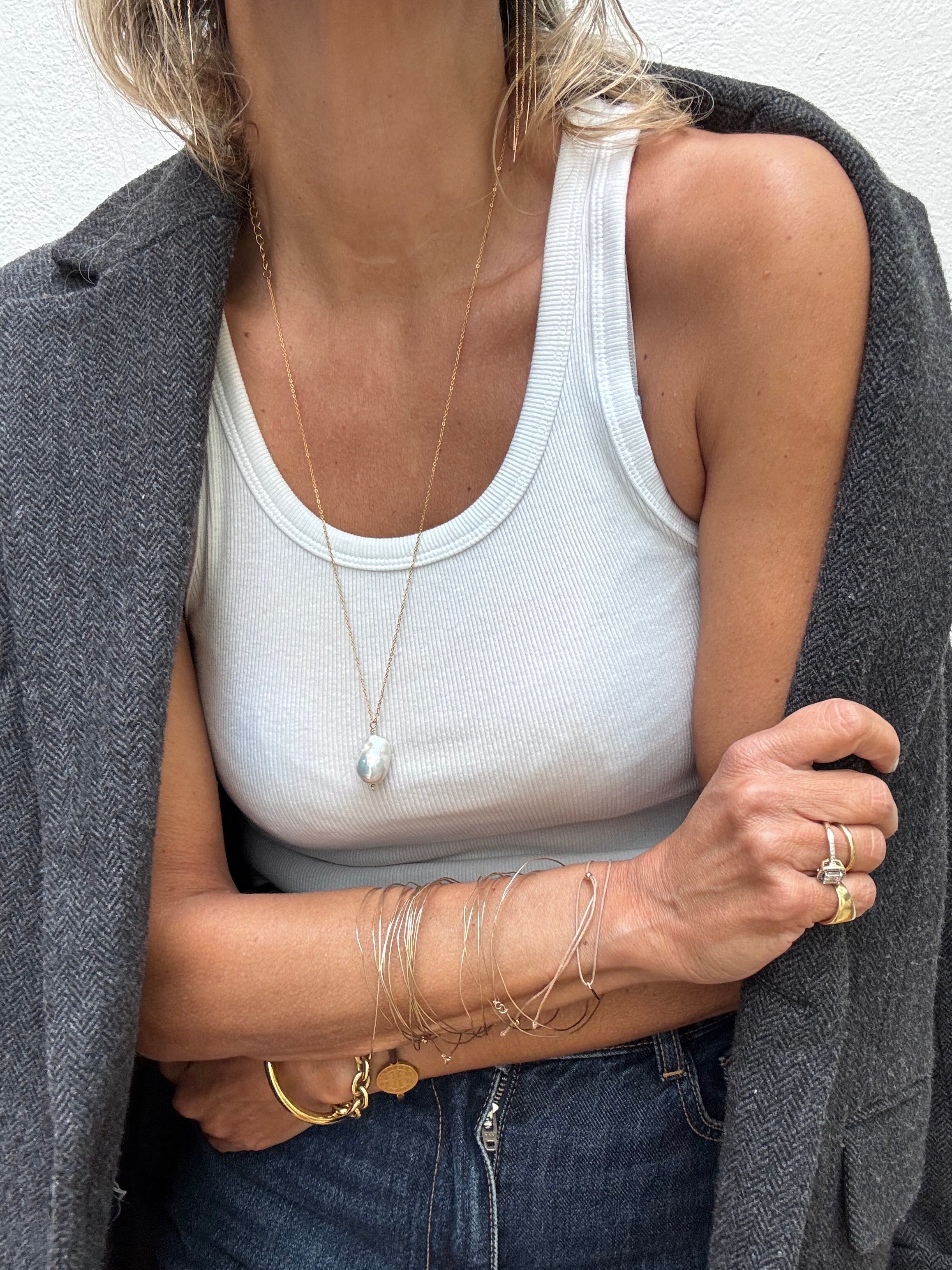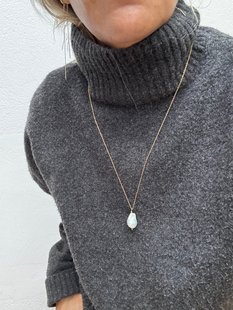 Chic, intemporel et un brin sexy comme j’aime ce collier va avec tout. Il est composé d’une longue chaîne fine en acier inoxydable avec une grosse perle baroque en pendentif.