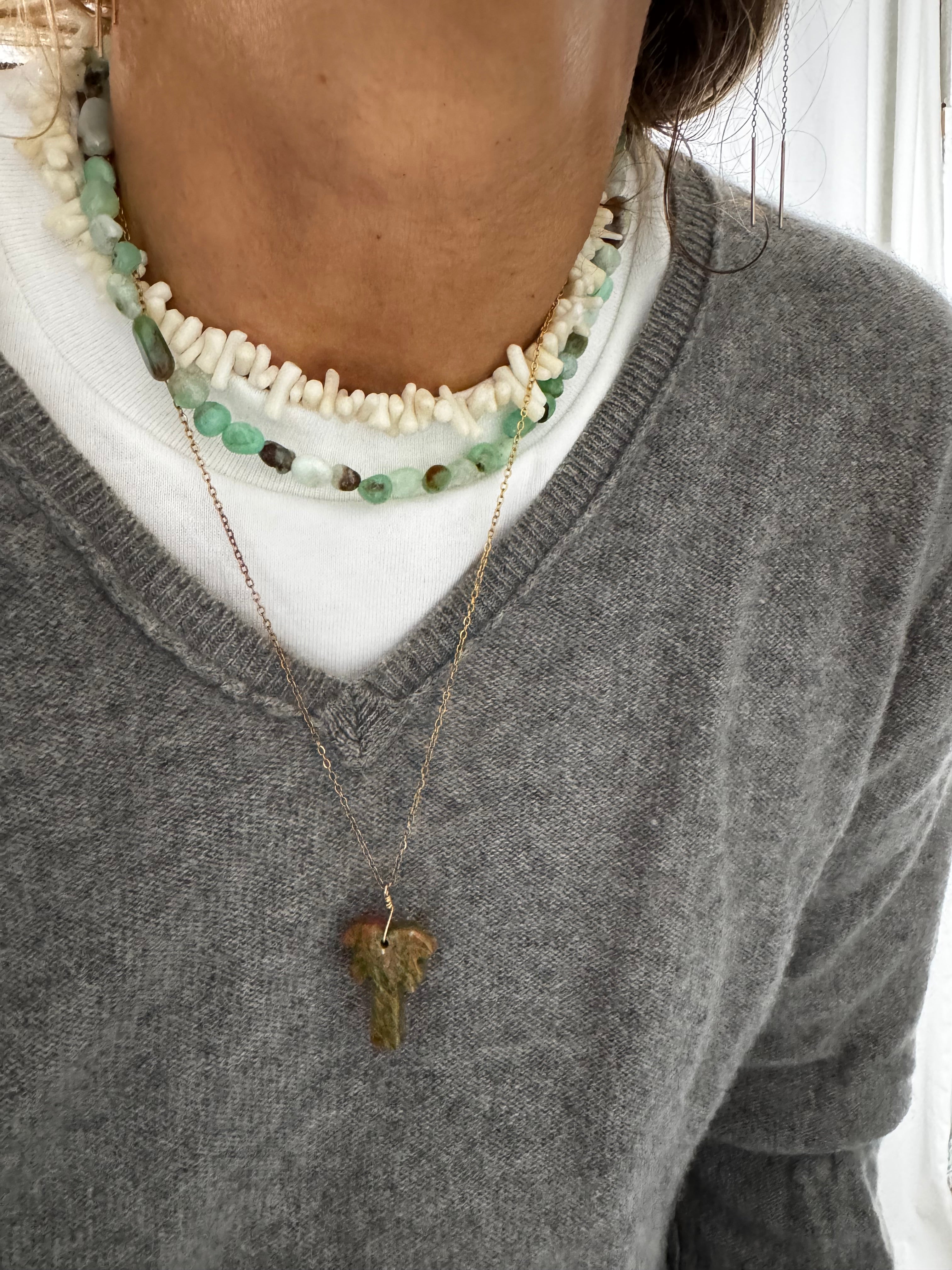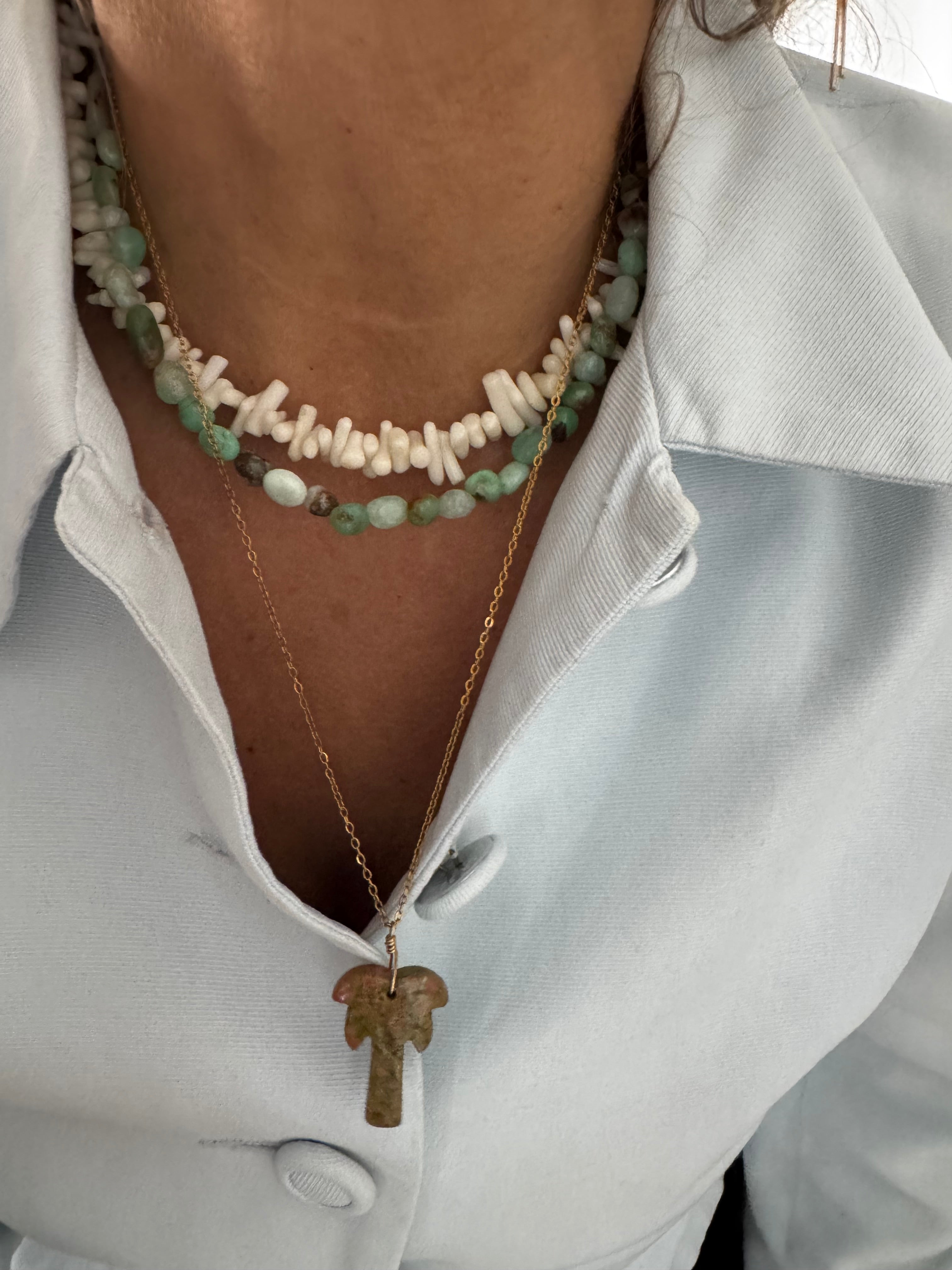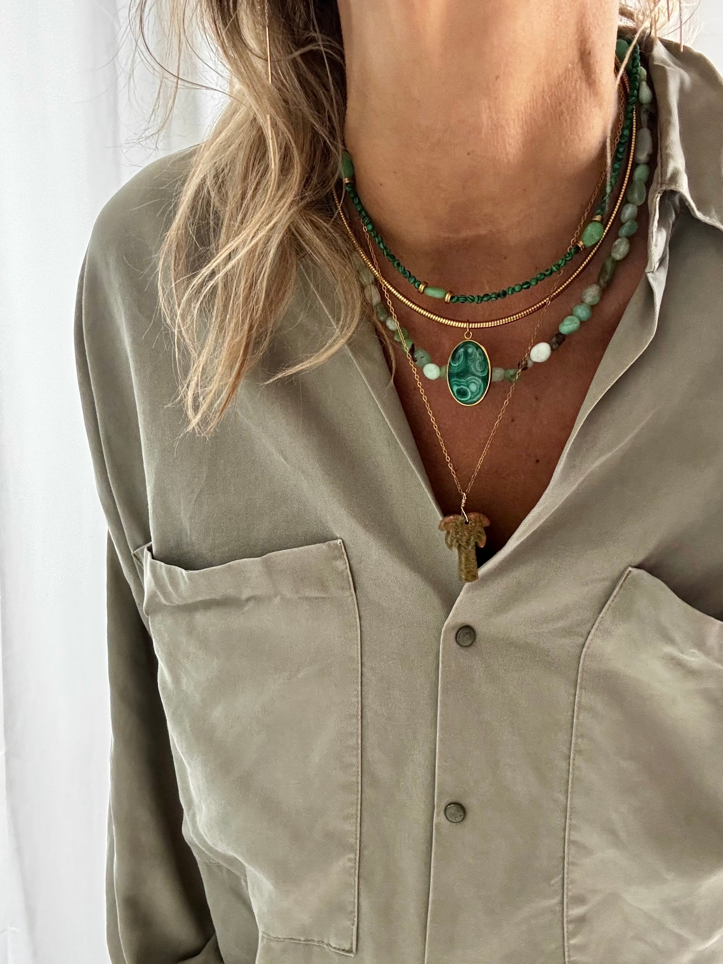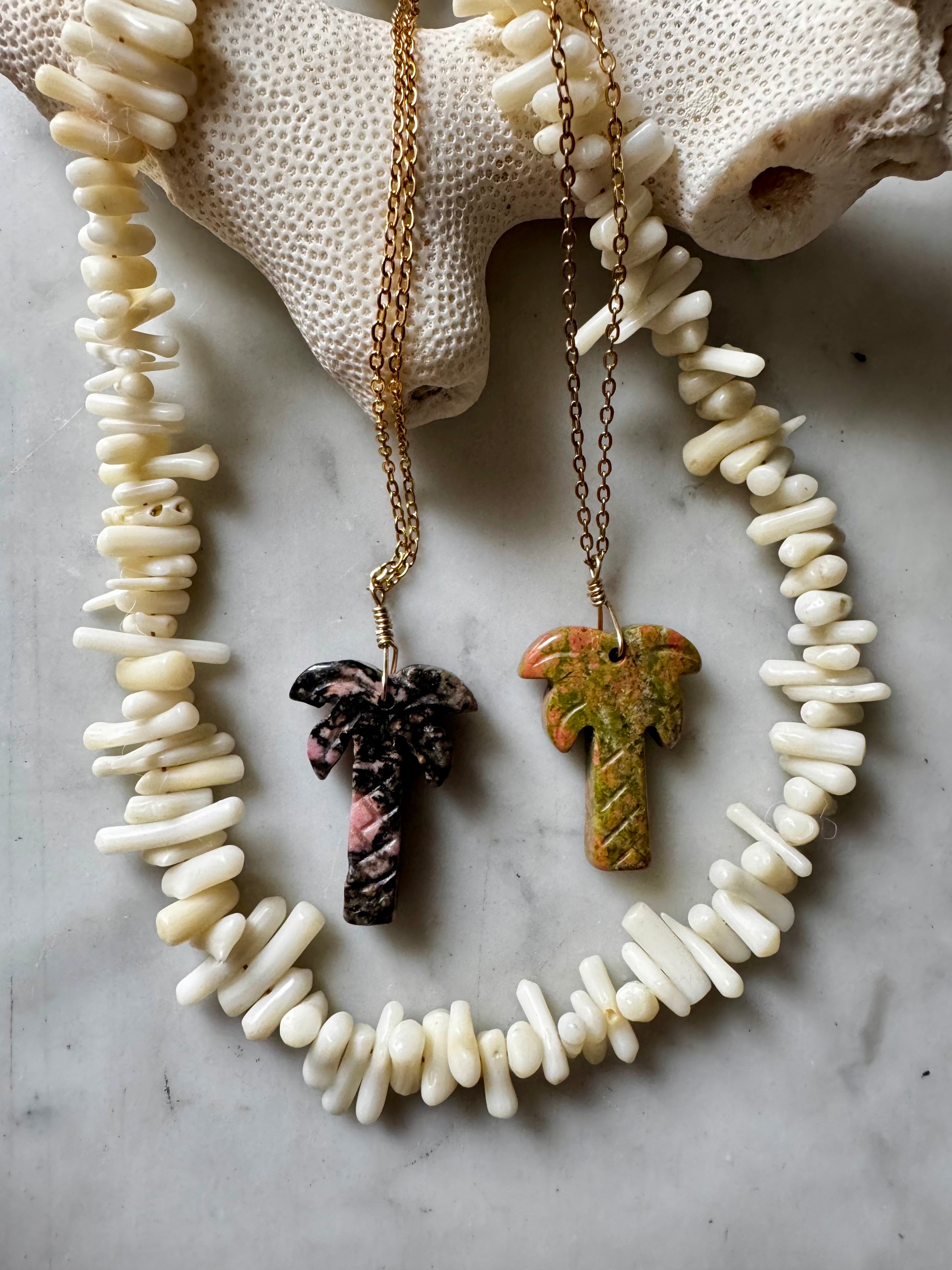 Chaîne en acier inoxydable doré or fin 24 carats et pendentif palmier en Unakite