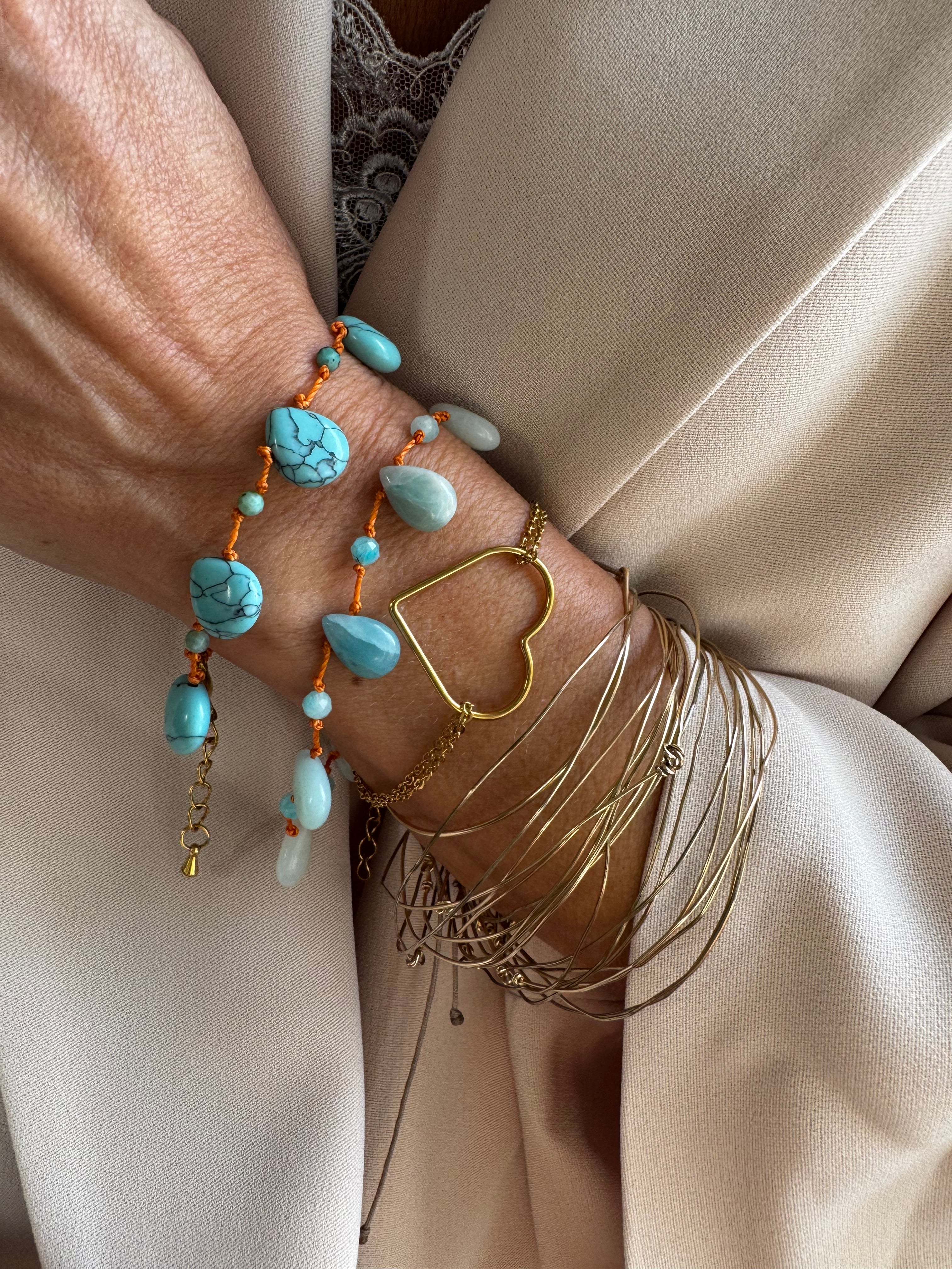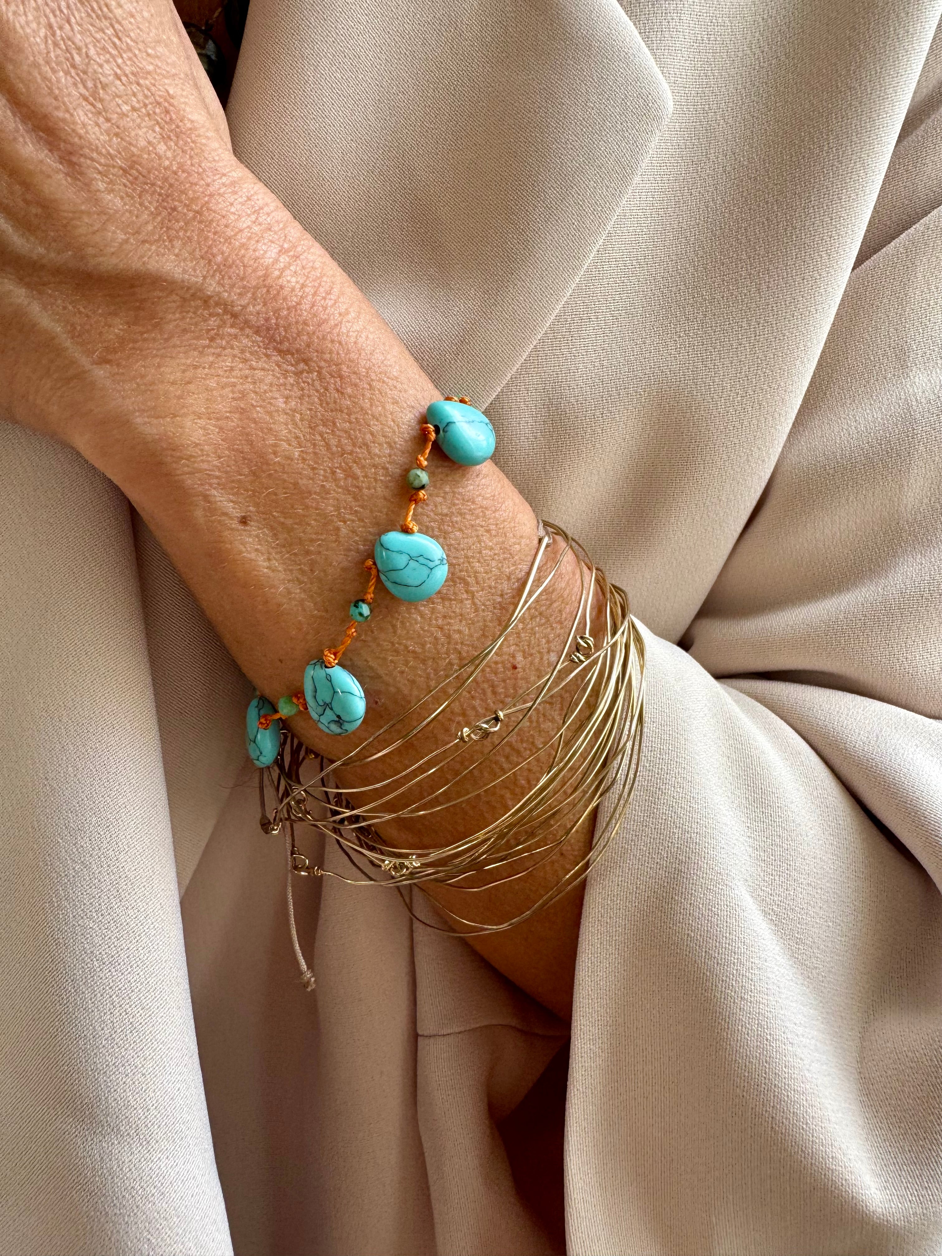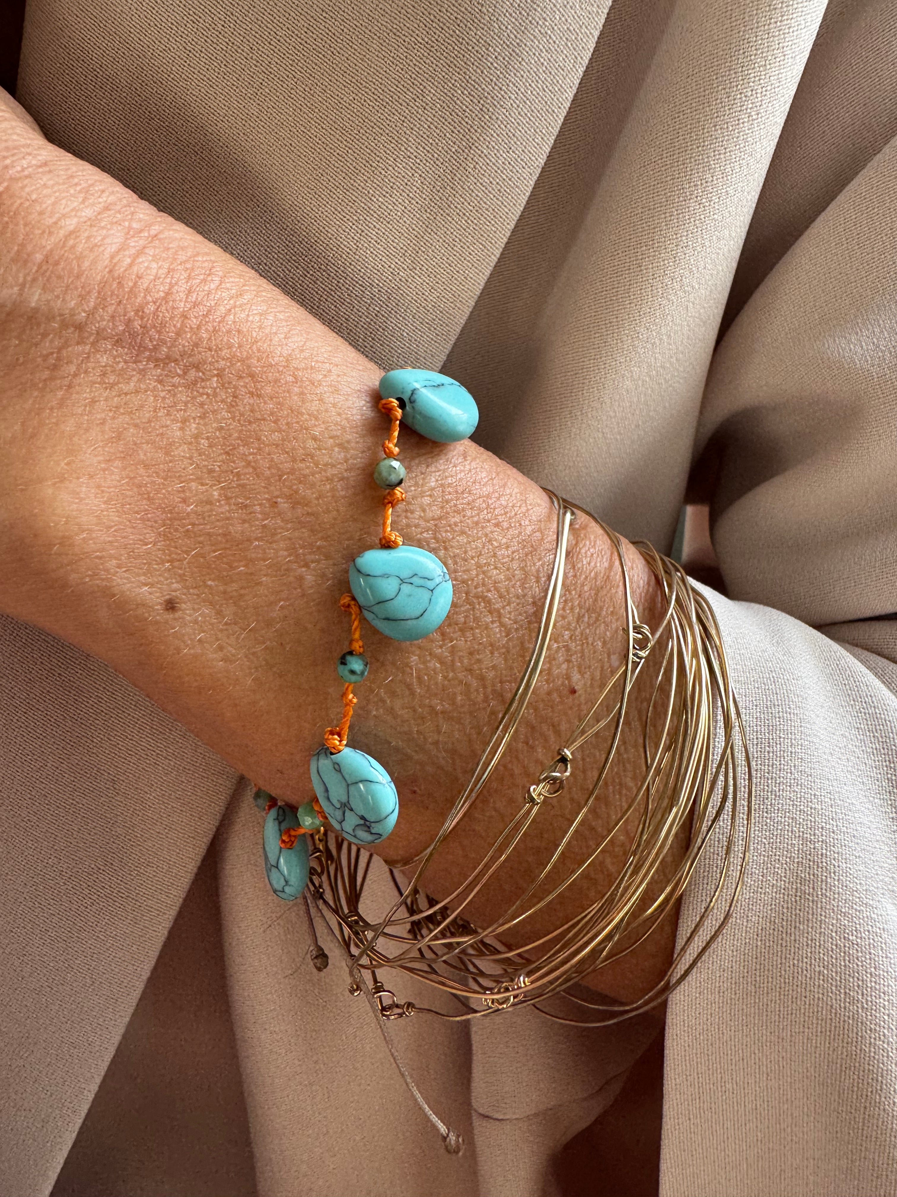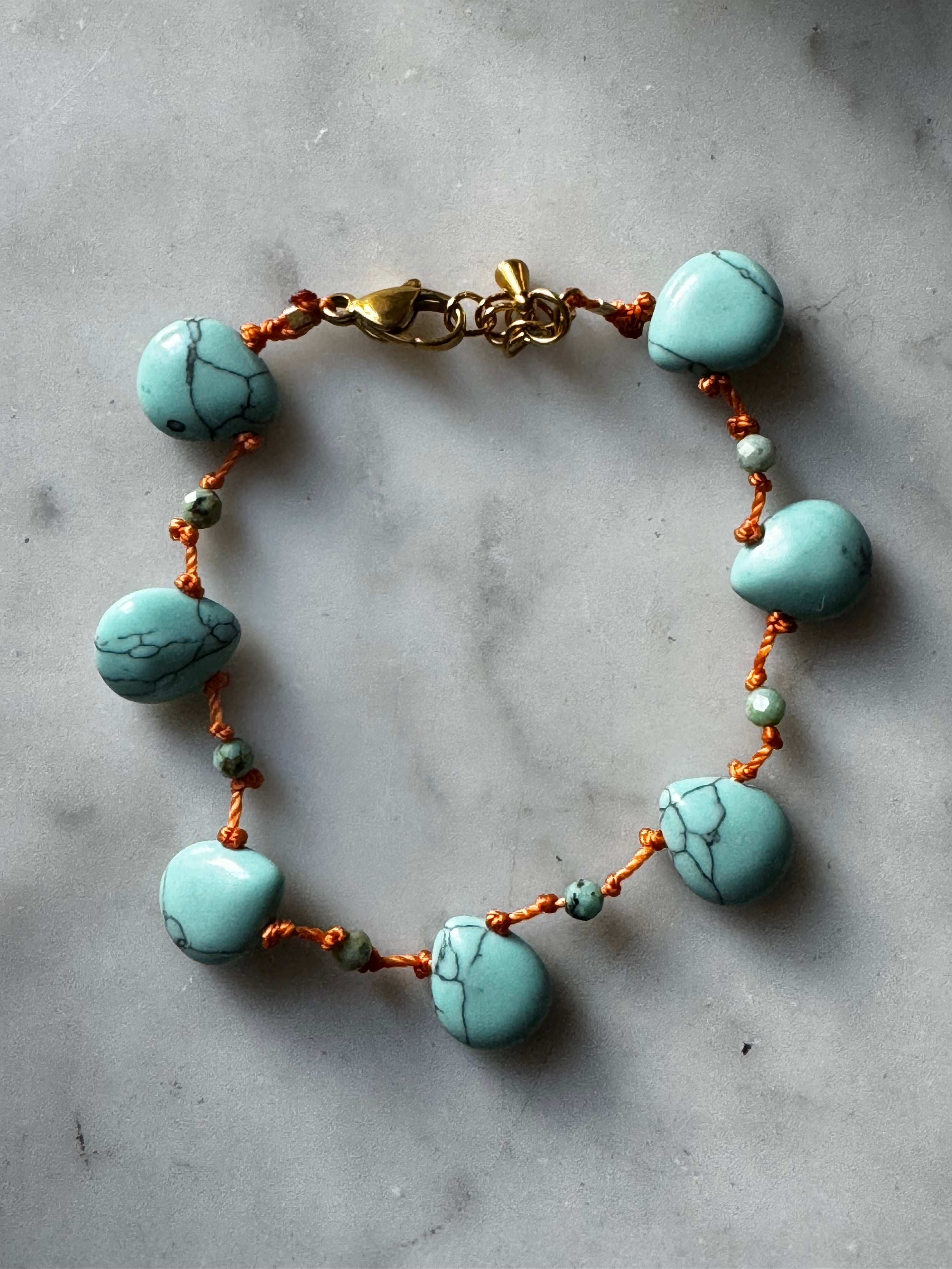 Bracelet goutte en Howlite Turquoise montée sur un fil de soie orange très résistant.